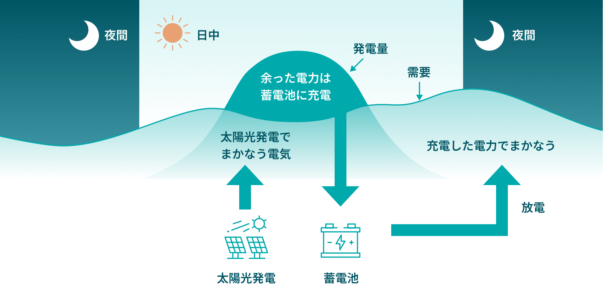 太陽光などの再生可能エネルギーは出力が不安定です。蓄電池は、「余っているときに充電し」「不足したときに放電する」ことで、電力の需給調整を行い、電力系統の安定化に貢献できます。今後、太陽光発電等の再生可能エネルギーを増加させるためには、この蓄電池の需給調整力は欠かせない機能なのです。
